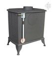 Печь изготовлена из серого чугуна с толщиной стенок 8 мм. Чугун обладает высокой теплопроводностью, буржуйка начинает отдавать тепло в помещение сразу после затопки. Мощности печи 7 кВт достаточно для отопления загородного дома площадью до 70 м2. Печь имеет герметичную топку и работает в режиме длительного горения с КПД 75%. Благодаря встроенному термостату (регулятор тяги) печь работает в режиме заданной температуры.